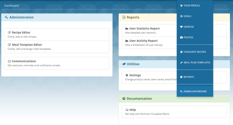 - White Label. Want to create your own brand and use your own colour schemes? Nutrition Complete can be fully tailored to fit with your brand image.